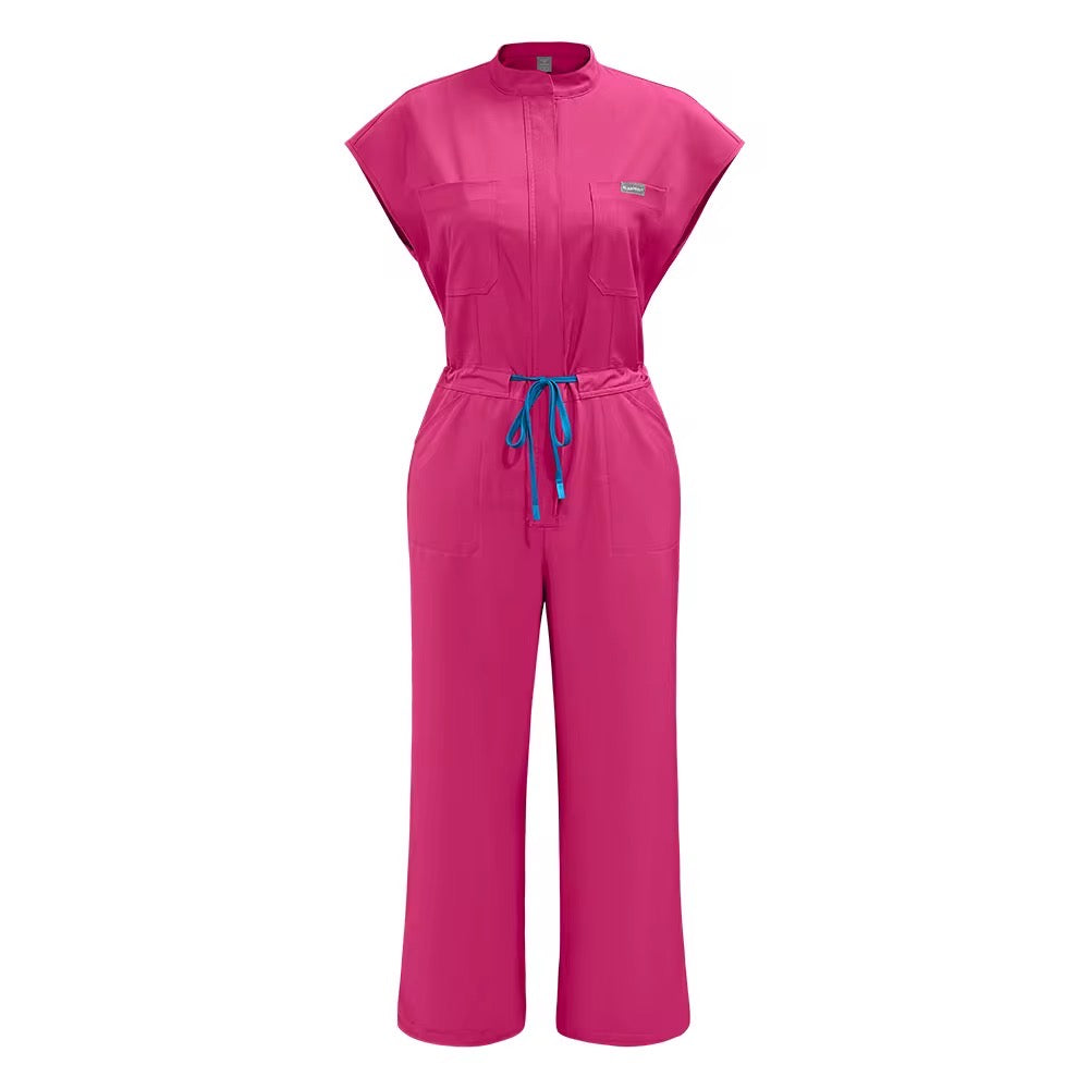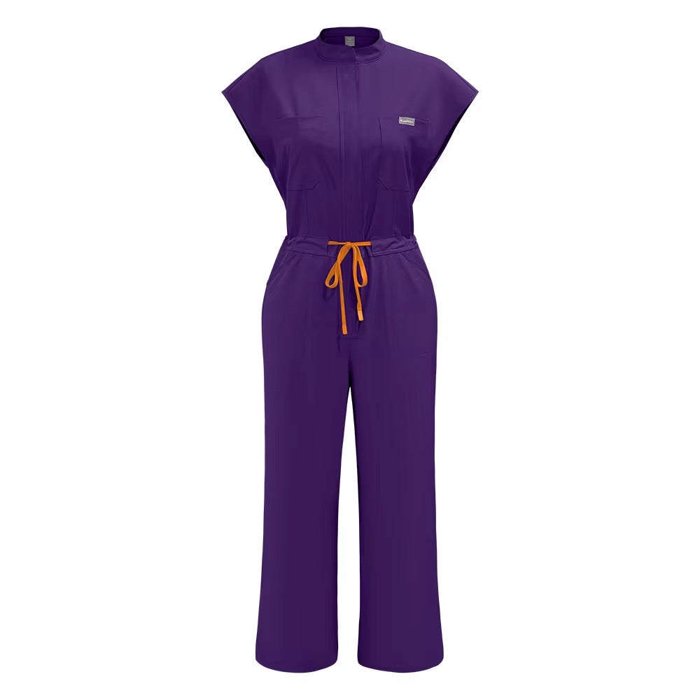 GET READY TO ADD THIS STYLISH CUTE JUMPSUIT TO YOUR SCRUB COLLECTION! THIS STRETCHY JUMPSUIT COMES IN FOUR COLORS; PURPLE,PINK,NAVY BLUE, AND BLACK! ALSO ENJOY FREE SHIPPING ON ALL ORDERS $75 OR MORE